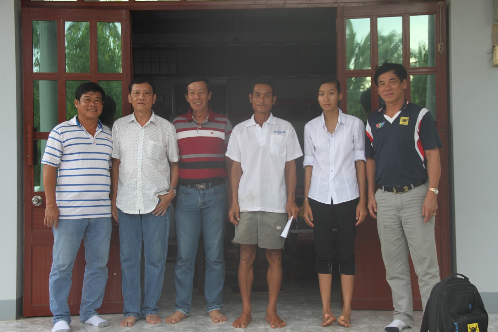 Các thành viên trong Đoàn chụp hình lưu niệm với gia đình em Mai Anh.